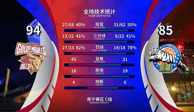 此前小组赛中,新疆男篮2战2负,曾经以78-91输给了浙江队。而浙江男篮则是2战2胜。在淘汰赛阶段,新疆男篮99-78淘汰了福建男篮。